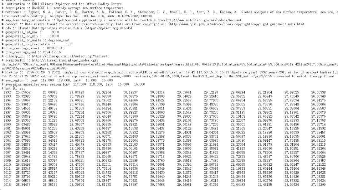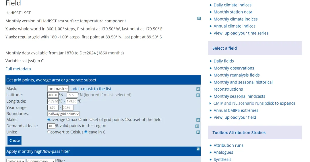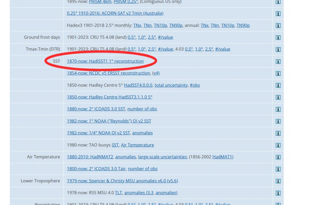 选择其中的一个数据集,如1870-now:HadSST1 1º reconstruction,点击进入。