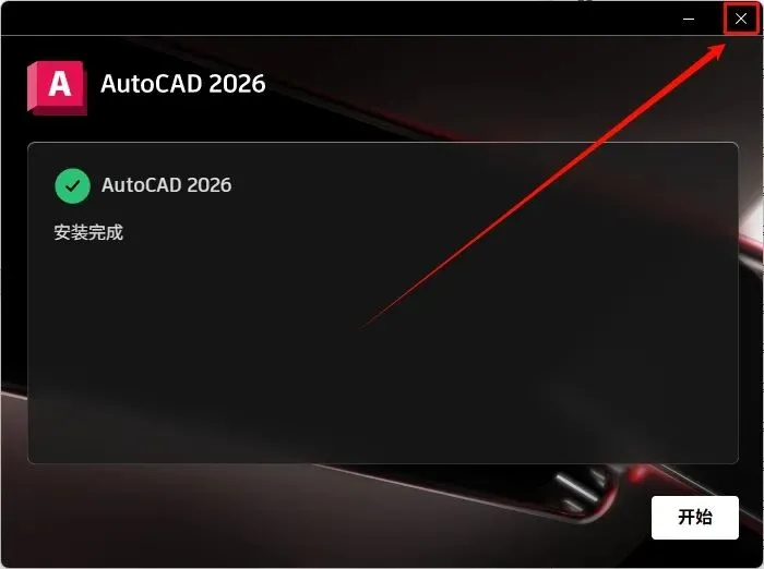 6.界面显示“安装完成”,点击右上角【X】关闭