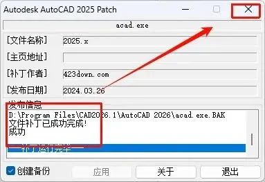 15.显示【补丁运行完毕】,点击右上角【X】关闭界面