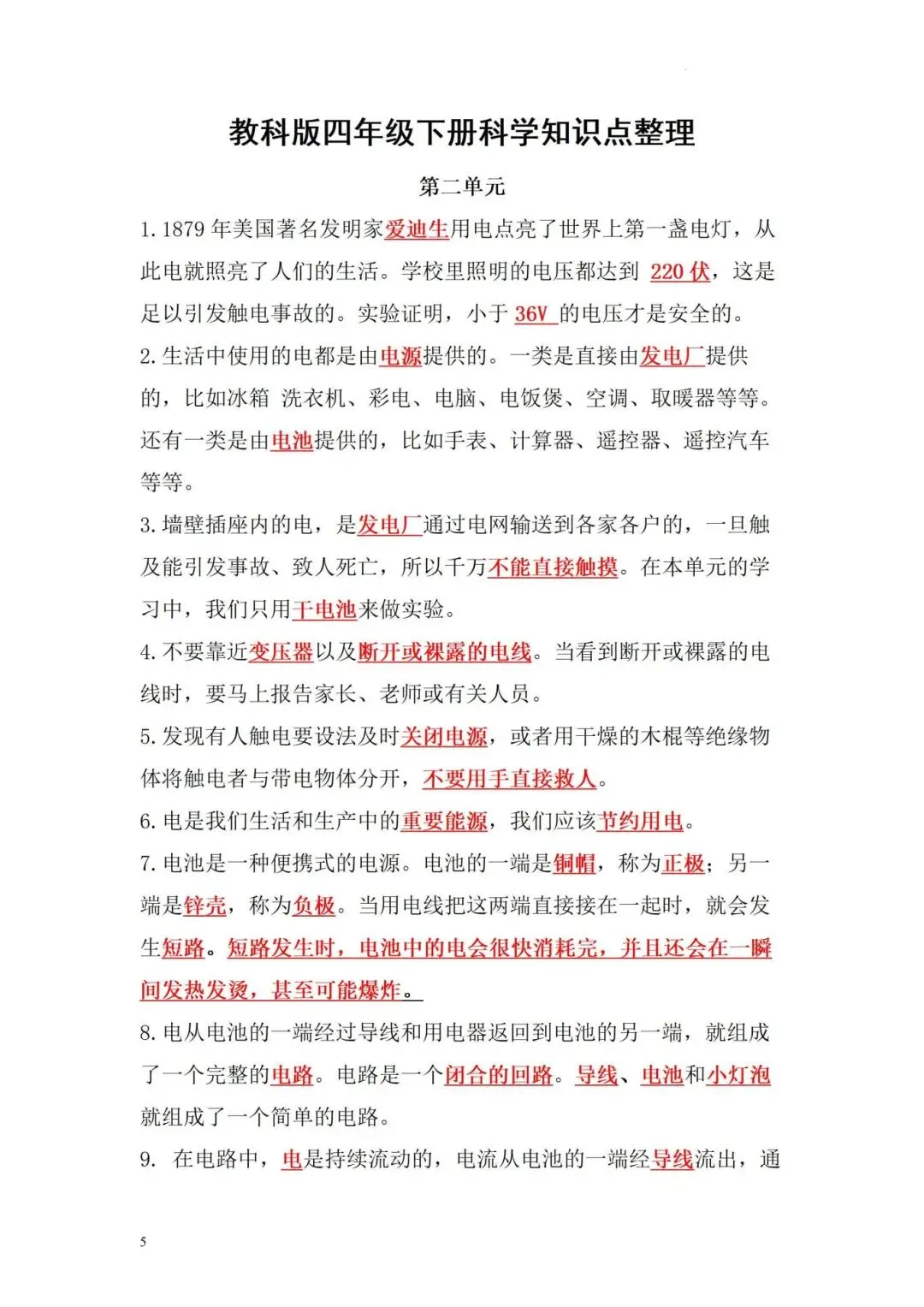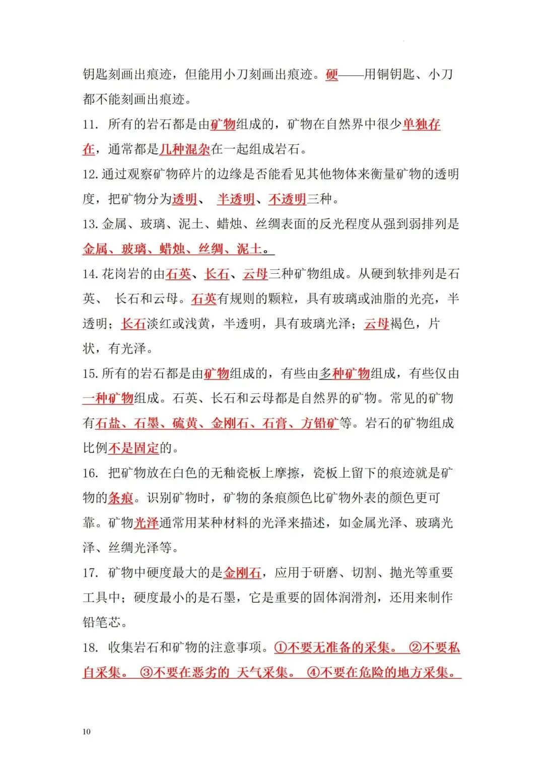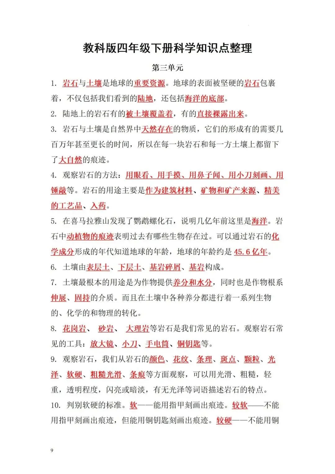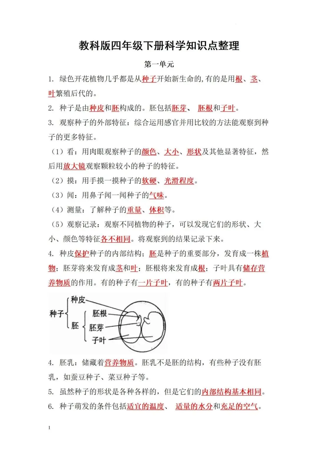 四年级下册科学知识点整理,完整电子版可打印