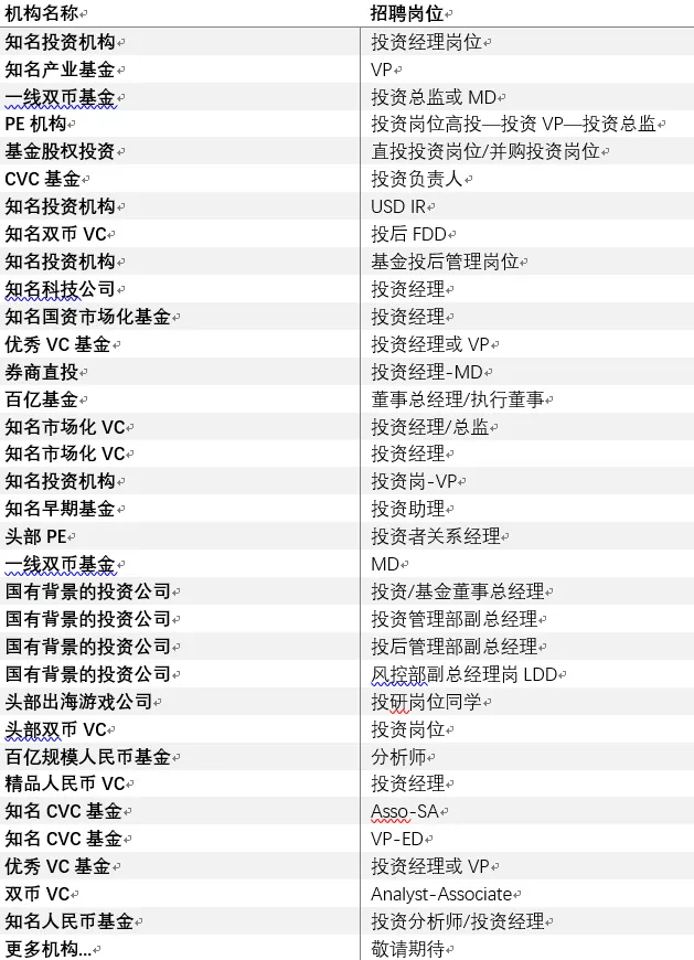 2、曾在投资机构或一线咨询公司有实习经历加分;