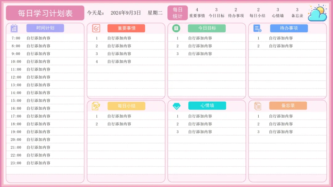 100款自律学习计划表(可编辑可打印)【免费分享】 本文分享:100款自律学习计划表合集 下载后办公软件可直接编辑修改打印 网盘打包下载链接👇 https://pan.quark.cn/s/4860ff709ea9 #学习时间计划表模板 #个人学习计划模板 以下是部分预览图下载 以上仅为部分预览图 点击阅读原文,可直接下载