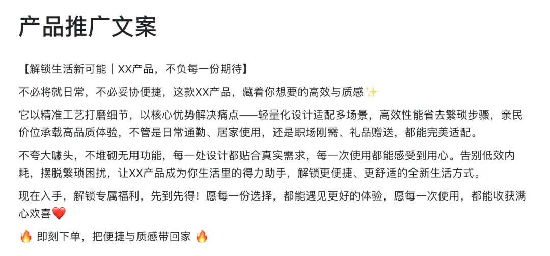 > AI:输出了一段通用文案⬇️