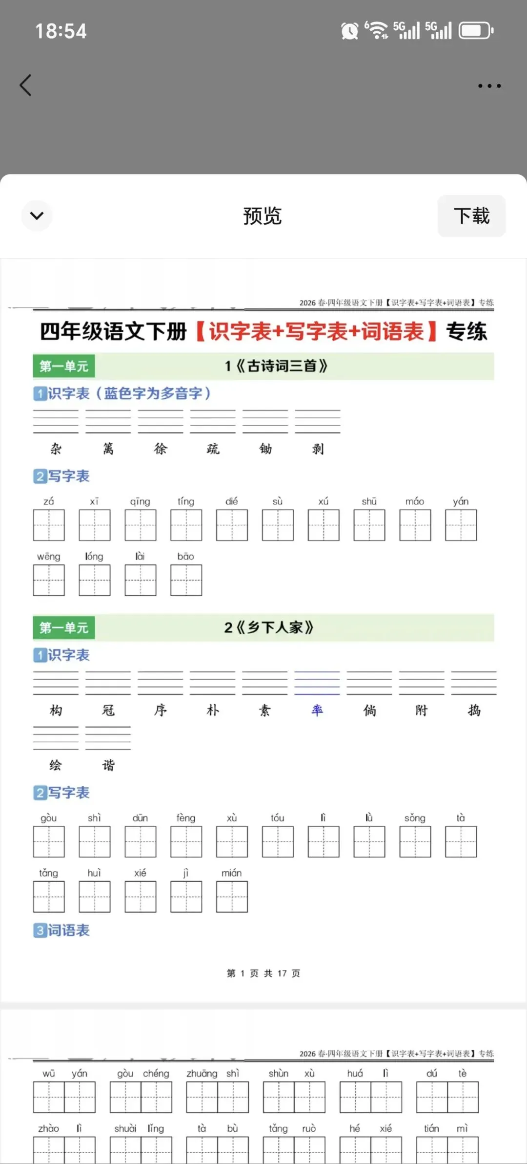 四年级语文下册字词专练资料!(电子版可打印)