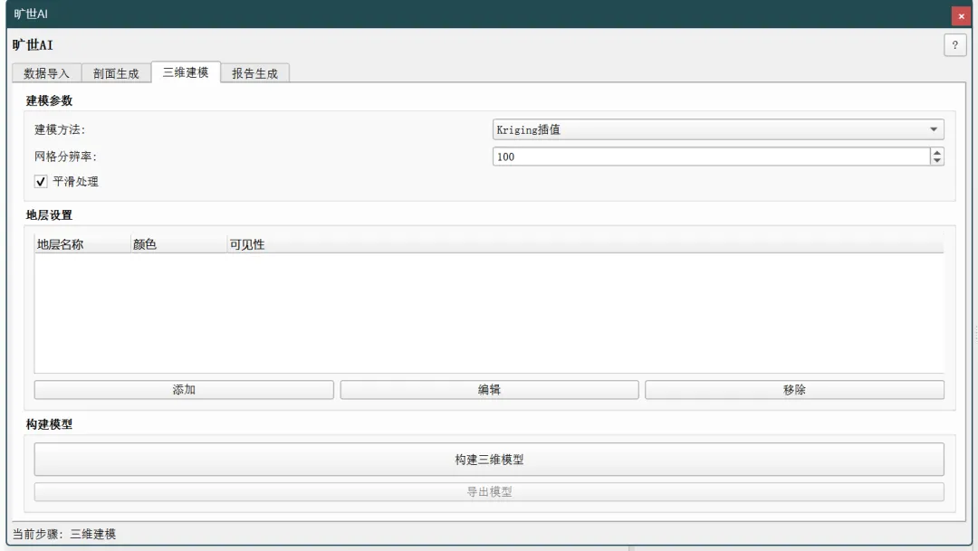 三维地质建模(Kriging/IDW/Spline/TIN)→ 可视化 → 图片导出 |