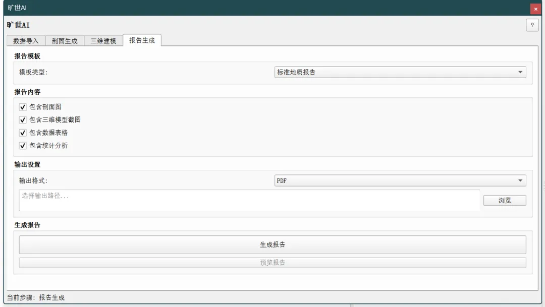 报告生成:模板选择与内容自动填充面板