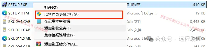 | 2.解压后,找到文件夹中的setup文件,右键以管理员身份运行安装。 |