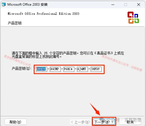 | 3.输入下图片中的密钥,然后点击下一步 |