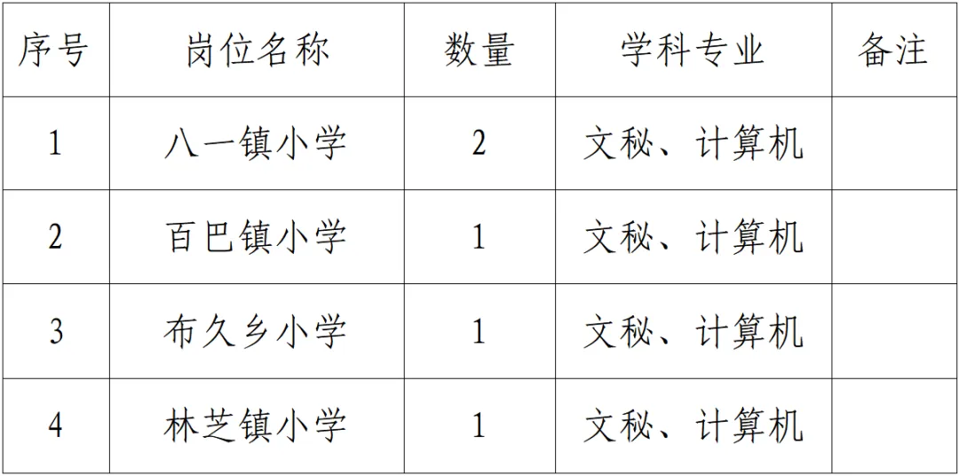 林芝市巴宜区教育局关于公开招聘学校行政临聘人员补录公告