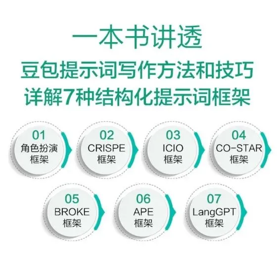 这是这本书最圈粉的地方!不用自己苦思冥想怎么提问,书中整理了7大结构化提示词框架,覆盖所有办公场景的提示词模板,直接复制粘贴到豆包,输入你的需求,就能快速产出高质量结果,省去90%的摸索时间。