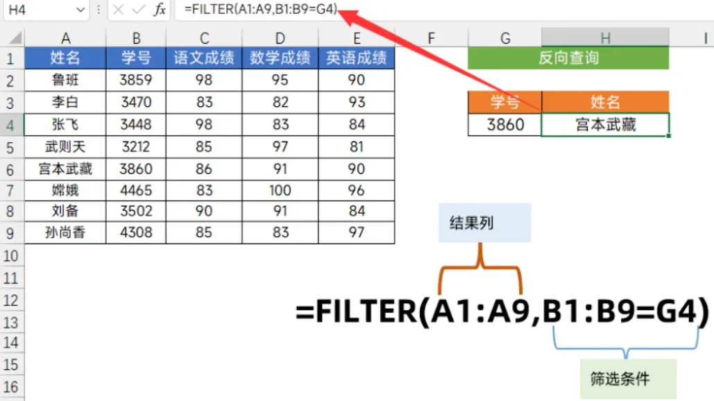 FILTER不管这个。比如我想根据“学号”查左边的“姓名”: