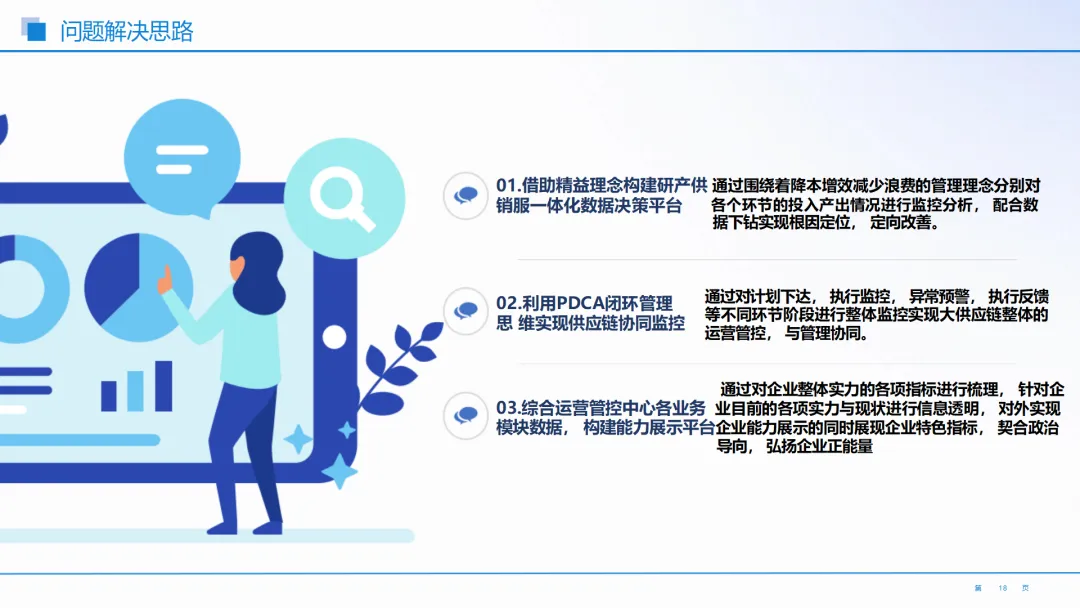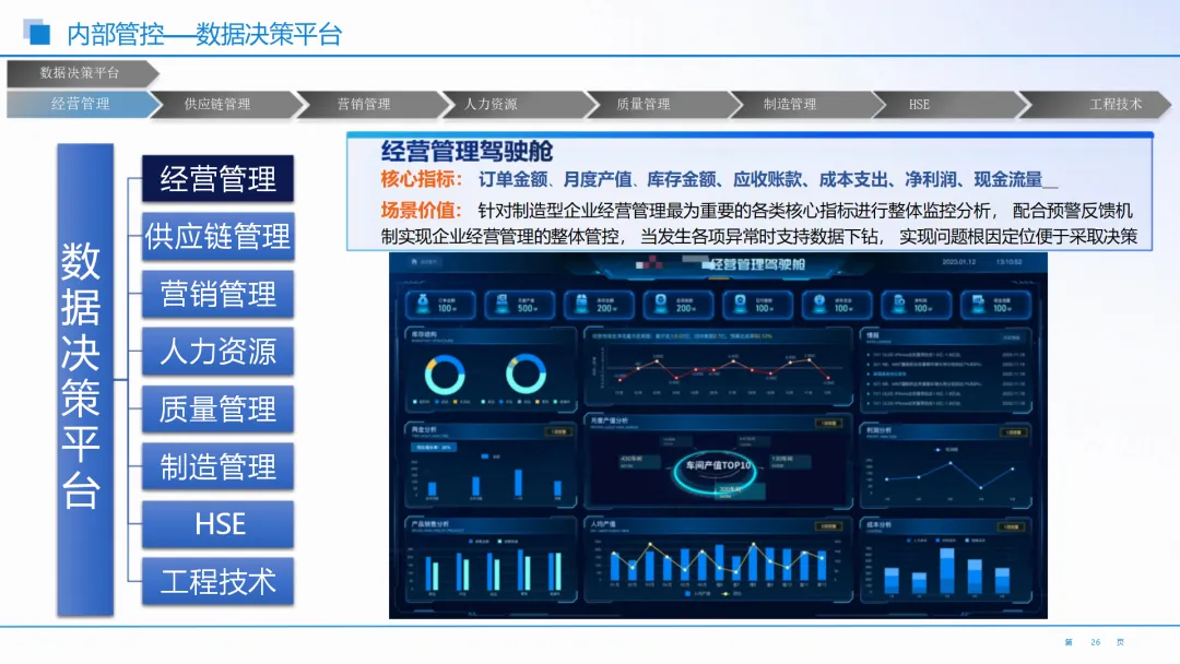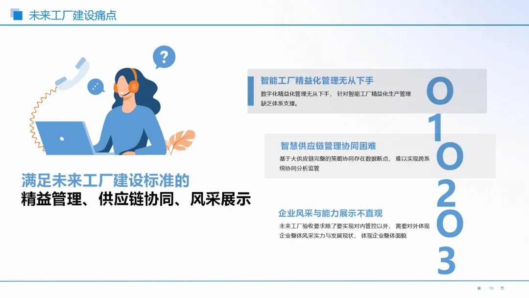 本方案聚焦企业精益管理、供应链协同、风采展示三大核心痛点,以数据互联互通为驱动,构建研产供销服一体化数据决策平台、供应链协同管控体系与企业风采展示中心。通过打通多业务系统数据、搭建全场景驾驶舱与数字孪生仿真,实现生产精益化、供应链智慧化、运营可视化,全面满足未来工厂验收与数字化转型需求,助力企业提质增效、塑造核心竞争力。