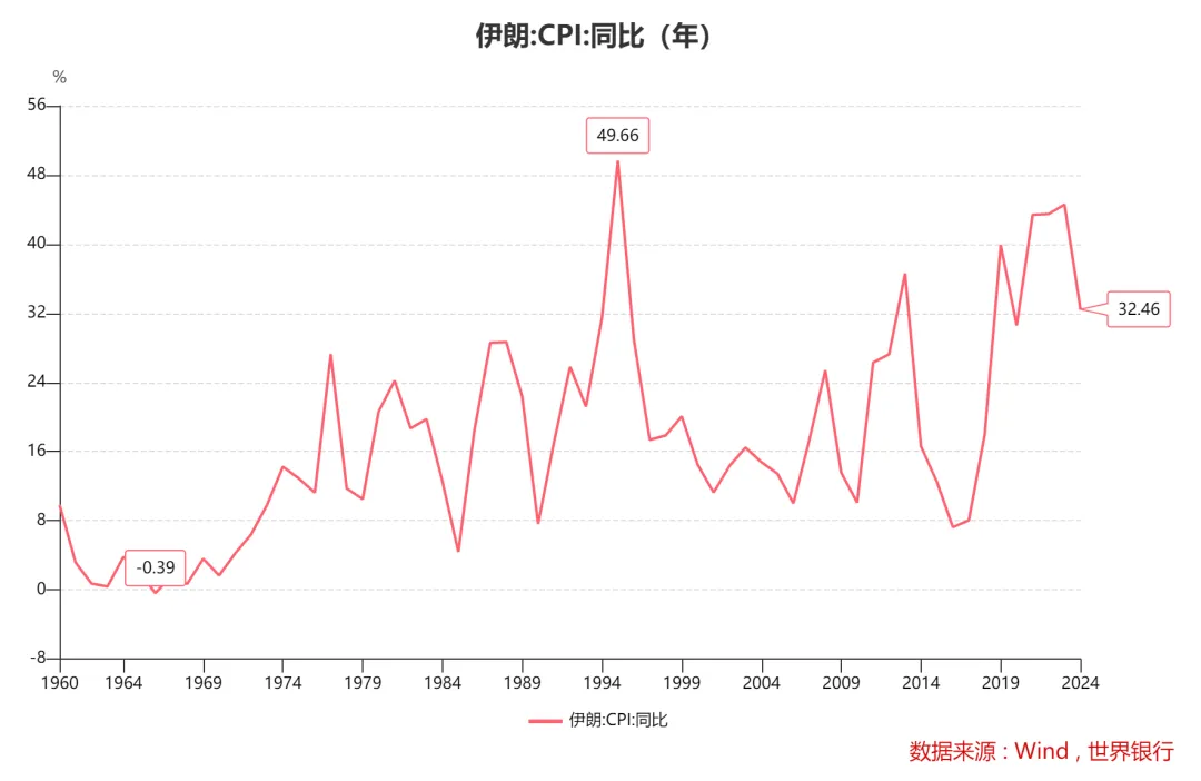 与此同时,伊朗长期面临高通胀问题。2019至2024年期间,伊朗的通胀率连续维持在30%-45%的高水平。食品和住房价格上涨严重影响普通民众生活,侵蚀居民实际购买力。事实上,伊朗自1979年革命之后,通胀率长期维持10%以上,个别年份通胀率甚至达50%。长期的恶性通货膨胀,严重侵蚀了居民的实际购买力,尤其对城市工薪阶层造成沉重打击。
