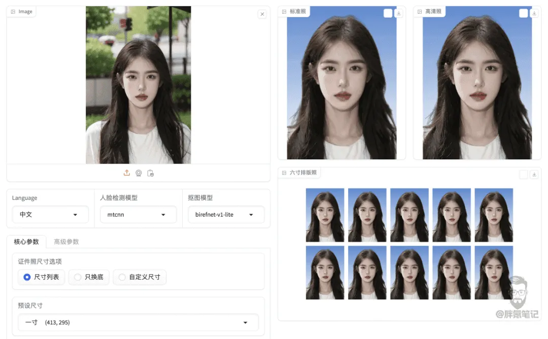 • ✅ 智能裁剪:自动识别人脸,按标准尺寸裁剪 -