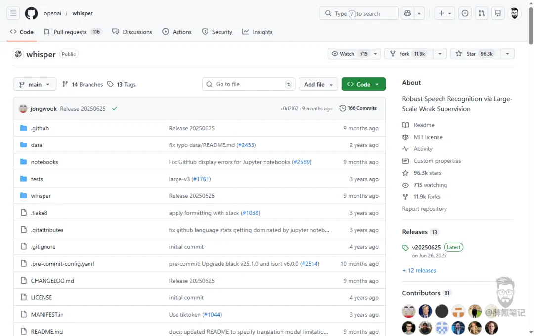 一句话介绍: OpenAI 开源的语音识别模型,准确率超高,支持多语言。