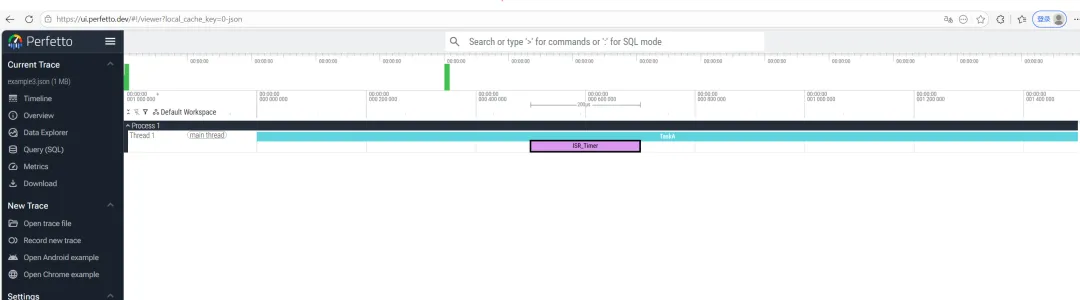{ "name": "TaskA", "ph": "B", "ts": 1000, "pid": 1, "tid": 1 }, { "name": "ISR_Timer", "ph": "B", "ts": 1500, "pid": 1, "tid": 1 }, { "name": "ISR_Timer", "ph": "E", "ts": 1700, "pid": 1, "tid": 1 },{ "name": "TaskA", "ph": "E", "ts": 2500, "pid": 1, "tid": 1 }