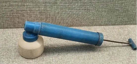图中这个蓝绿壳子的家伙叫小喷雾器,塑料罐肚圆圆的,侧身接一截笔直的管,尾巴上细铁杆拴个把,小拇指粗细,来回一抽一推,药水就从前嘴里“嘶”一下喷出去,雾点细得像盐沫儿,菜畦上一扫一排就亮了,春天一早露还没干,爸拿着它在垄沟里穿,背影被雾气糊了一层亮,嘴里嘟囔着“别靠太近,叶子会伤”,那时候讲究的是手上匀速和眼里准头,现在一桶电动背上去,轻轻一摁就行了。