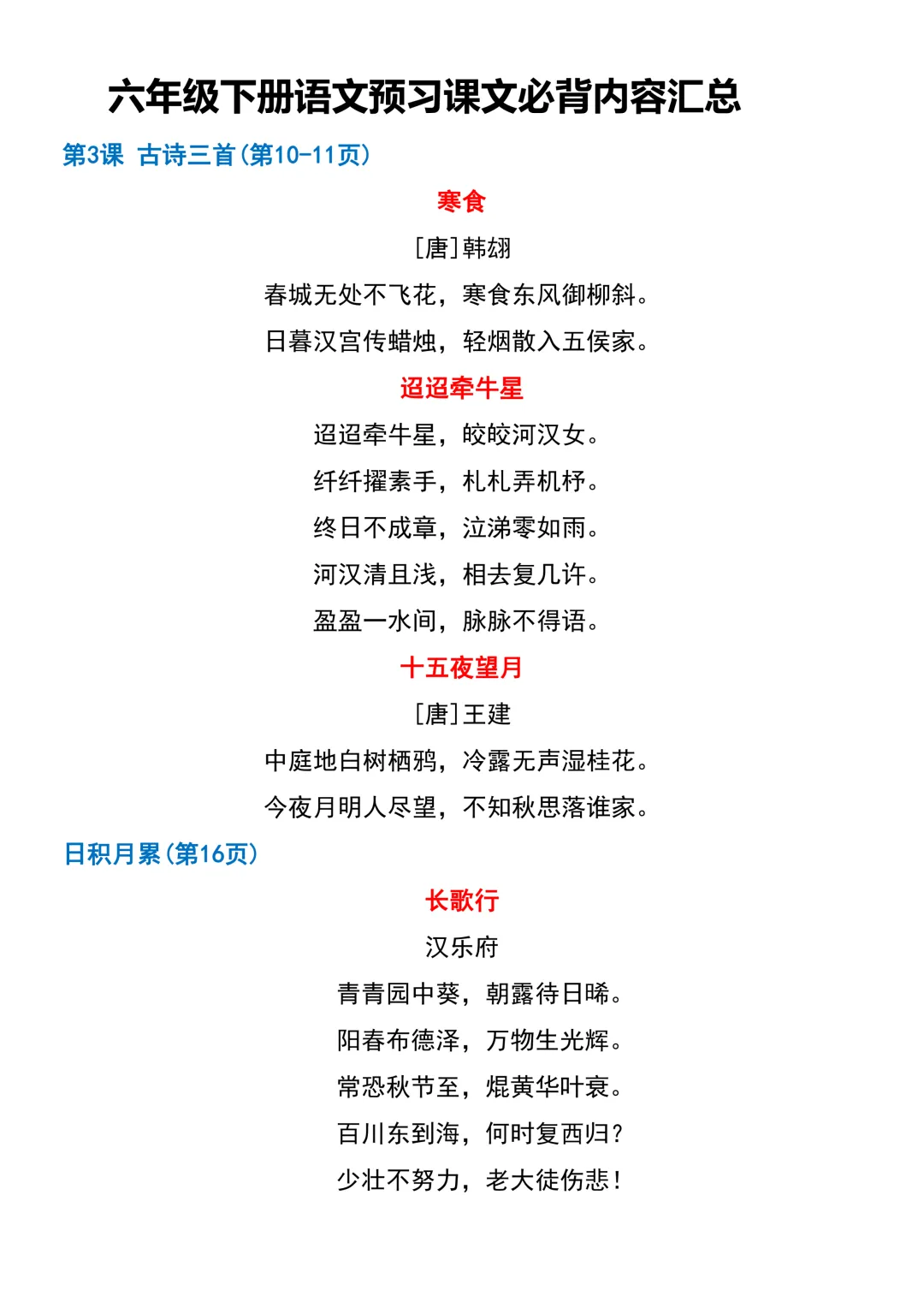 2026 春六年级下册语文|必背课文闯关表 古诗 + 文言文 + 课文 + 日积月累全覆盖(电子版+免费下载+学习资源)