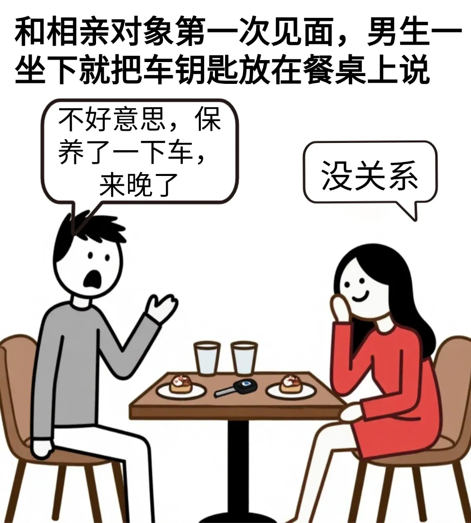 开心漫画:相亲第一次见面,男生抱歉的说:对不起,保养了一下车,来晚了,女生:没关系!男生:美女,我们是不是在哪里见过…