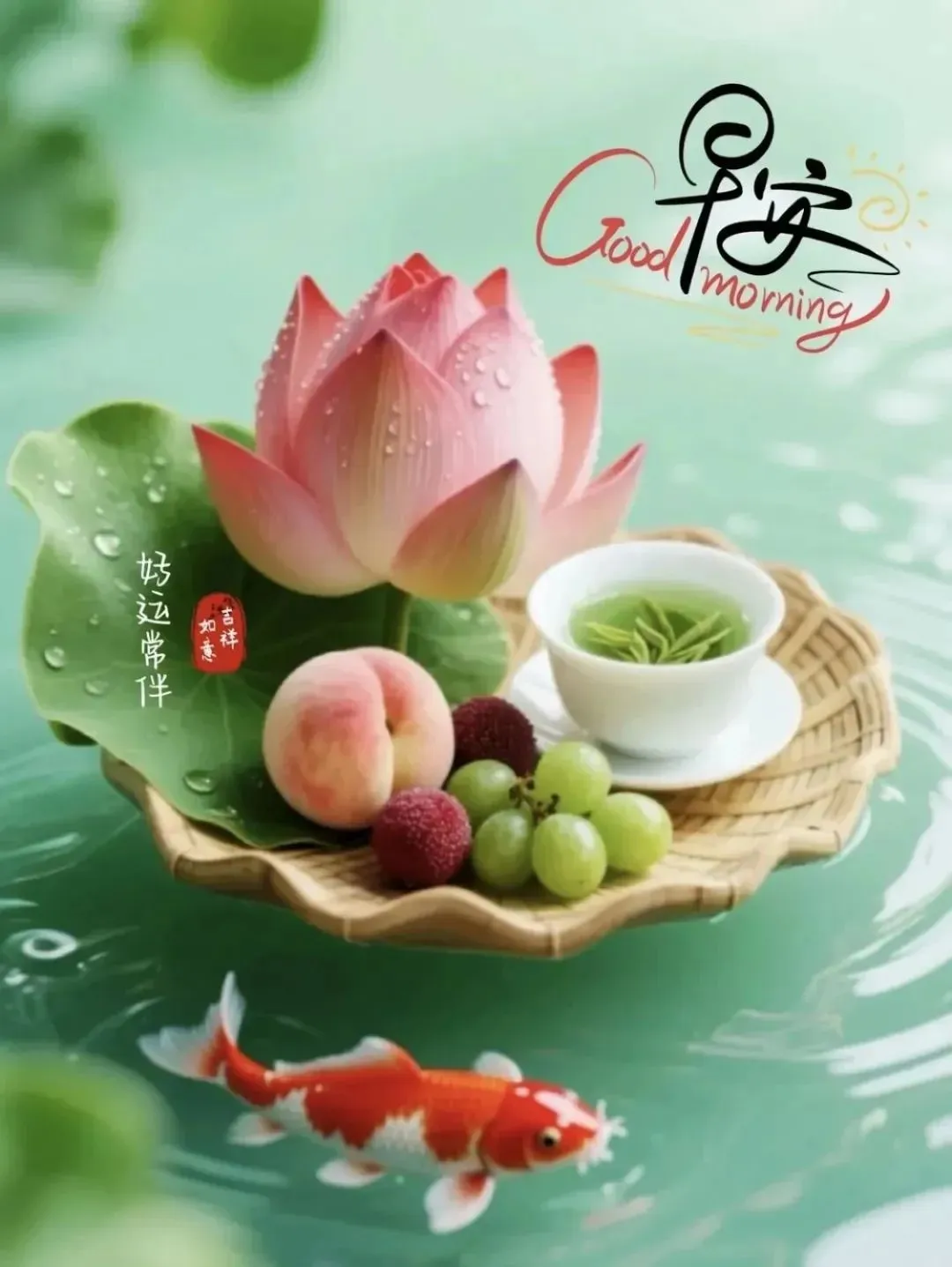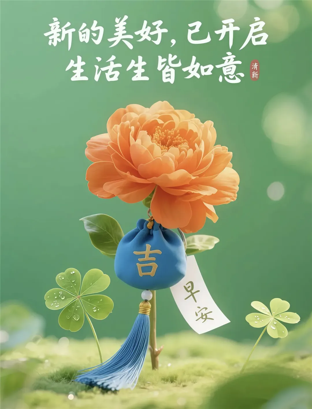 时光记录着我们的相遇,微信传递着彼此的心意,问候增添了生活的温度,祝福温暖了每一个清晨。送你三个宝贝:吉祥、如意、身体好!早安愉快!