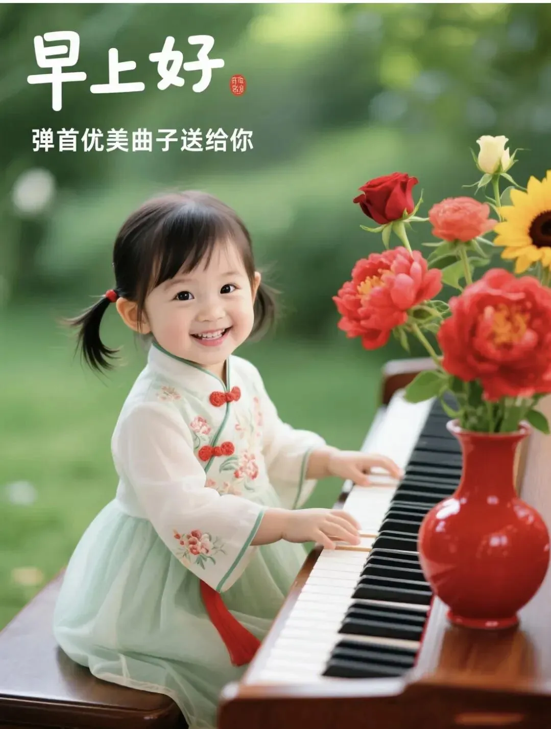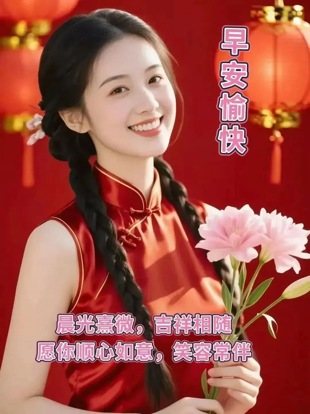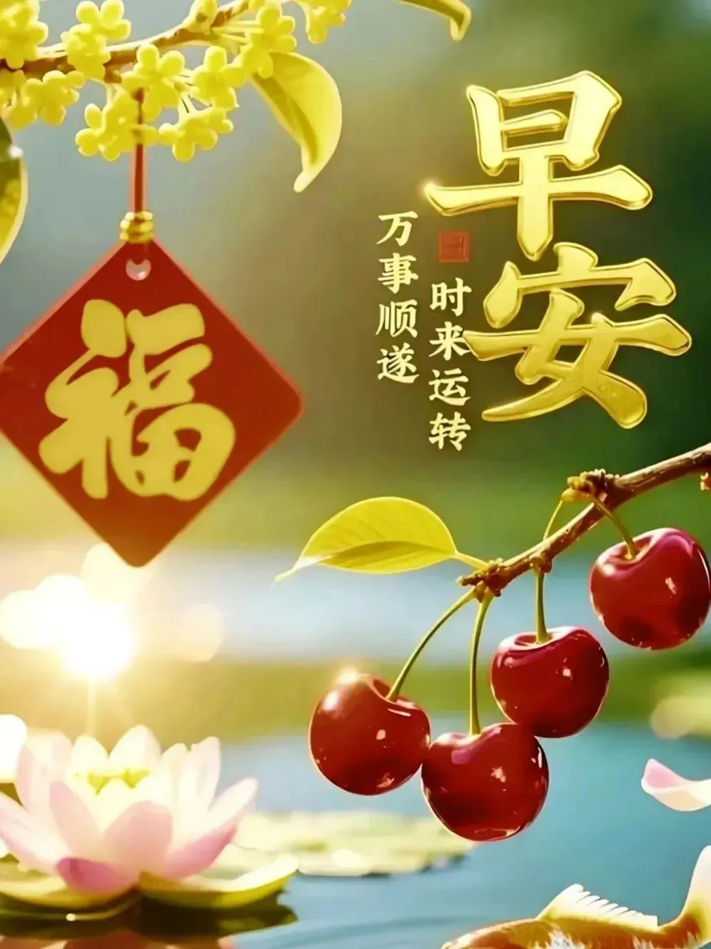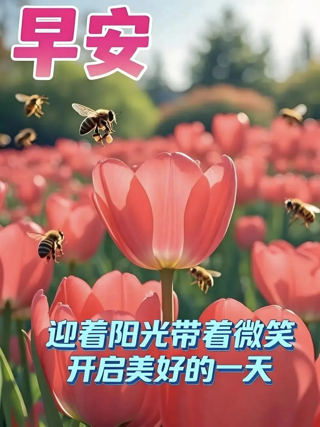 风中传来晨钟声,问候远方萦心间,愿你每天都开怀笑,快乐幸福绕身边。祝福跟随你的脚步,好运随着你的心愿,愿你一生充满灿烂,每天都是阳光般的美好!早安!
