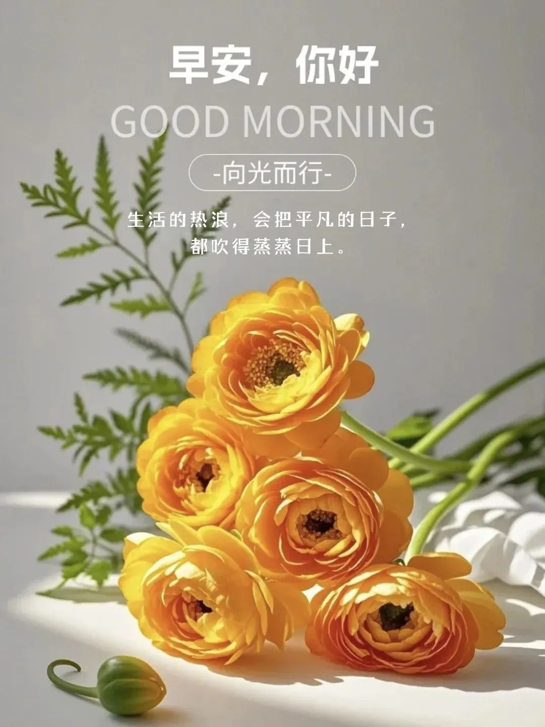 早安!时光不扰,过往不念,未来不忧,当下不怠。愿你在新的一天,沐光启程,奔赴热爱,把忧愁抛给昨夜,让心灵沐浴阳光,热烈而自信地前行。