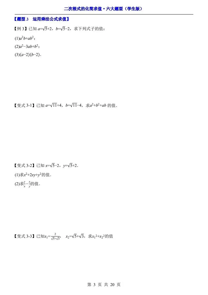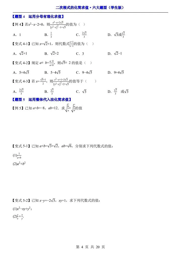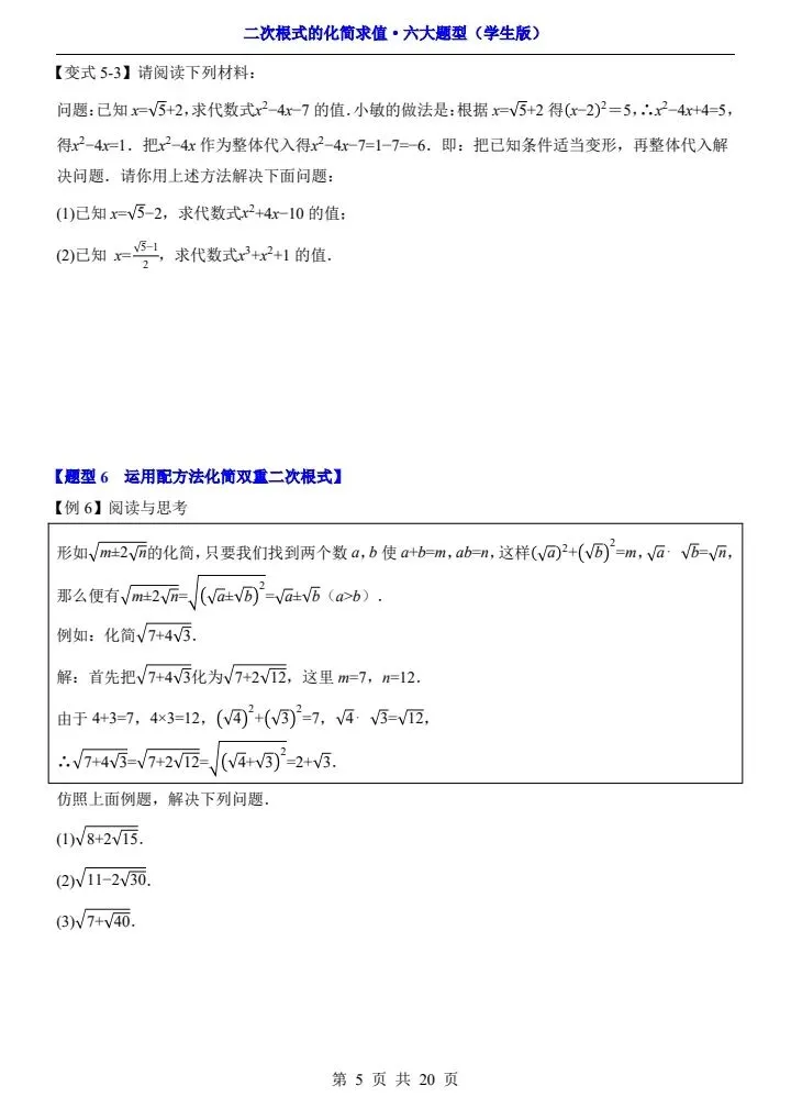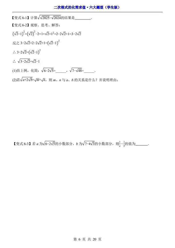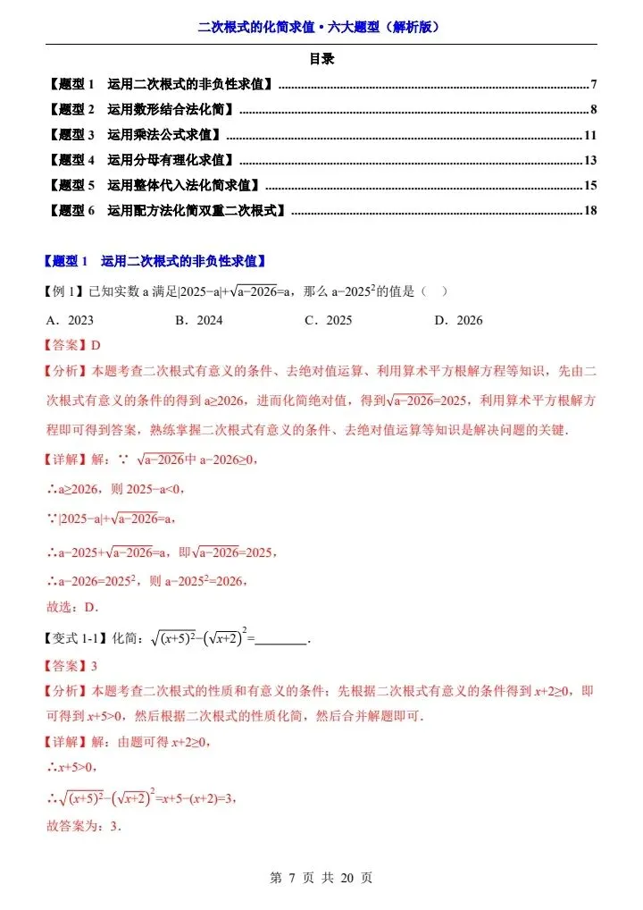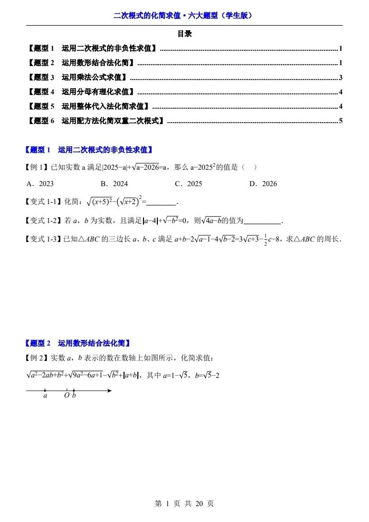 2026年新版八年级下册数学《二次根式的化简求值》六大常考题型专项训练,练习版+解析版,完整电子版可打印!