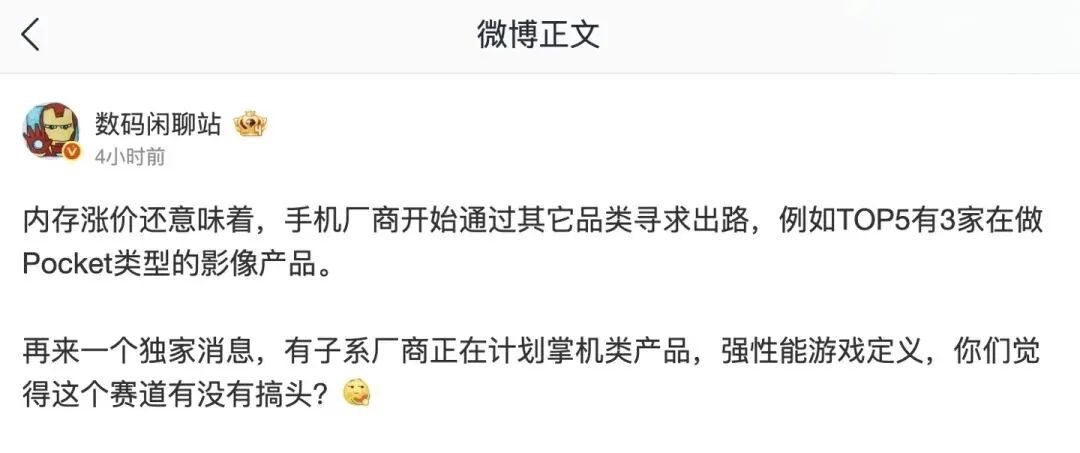 今天,该消息得以进一步确认。博主@数码闲聊站爆料,有手机厂商已确定正在开发“安卓掌机”,结合其过往爆料习惯,该产品预计来自一加品牌。