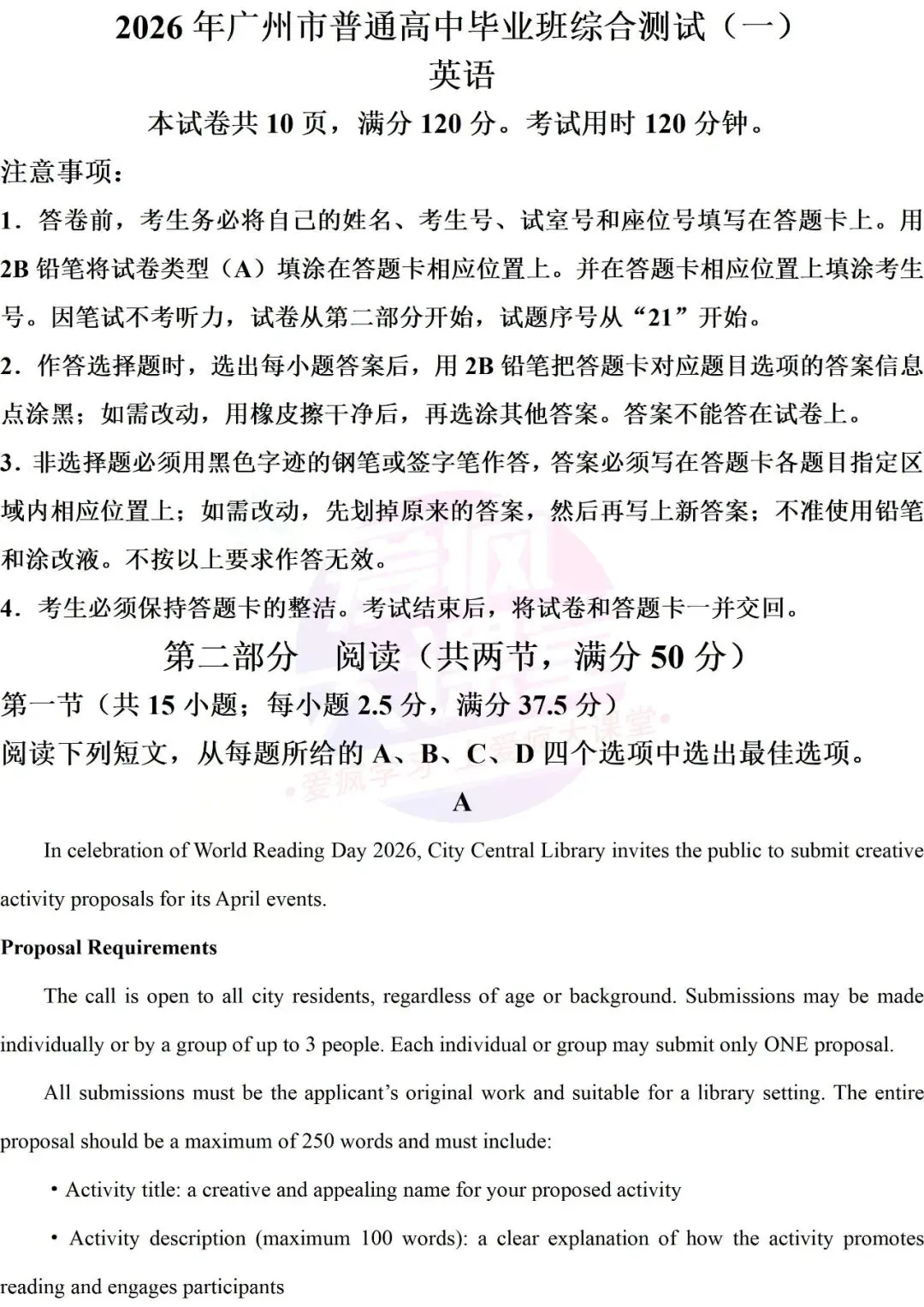 试题资源 | 2026届广州一模英语试题(文档免费下载)