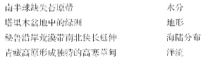 受海陆分布、地形起伏、洋流、水分等地方性因素的影响,陆地环境出现了一些地方性的地理景观和自然带现象。如下表所示: