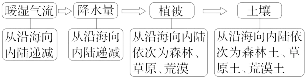 (1)从沿海向内陆:依次为森林带、、荒漠带。