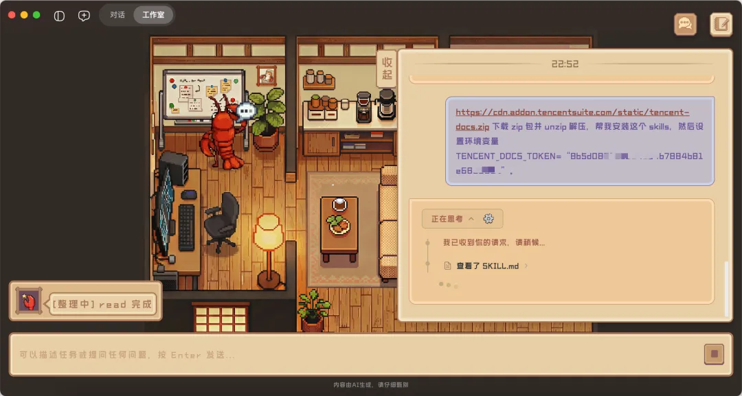 结合昨日和大家分享的腾讯文档Skill,今日就和大家实操,通过和小龙虾对话安装腾讯文档Skill以及创建文档。