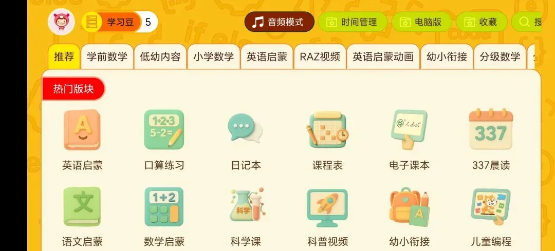 场景化词汇、分级阅读培养英语听说能力;科普动画、图形化编程则点燃孩子对科学与逻辑的好奇心,一站式完成素质教育拓展。