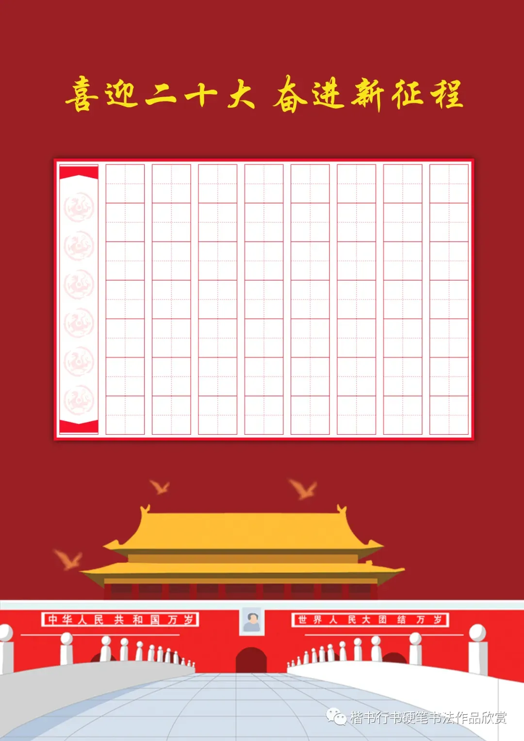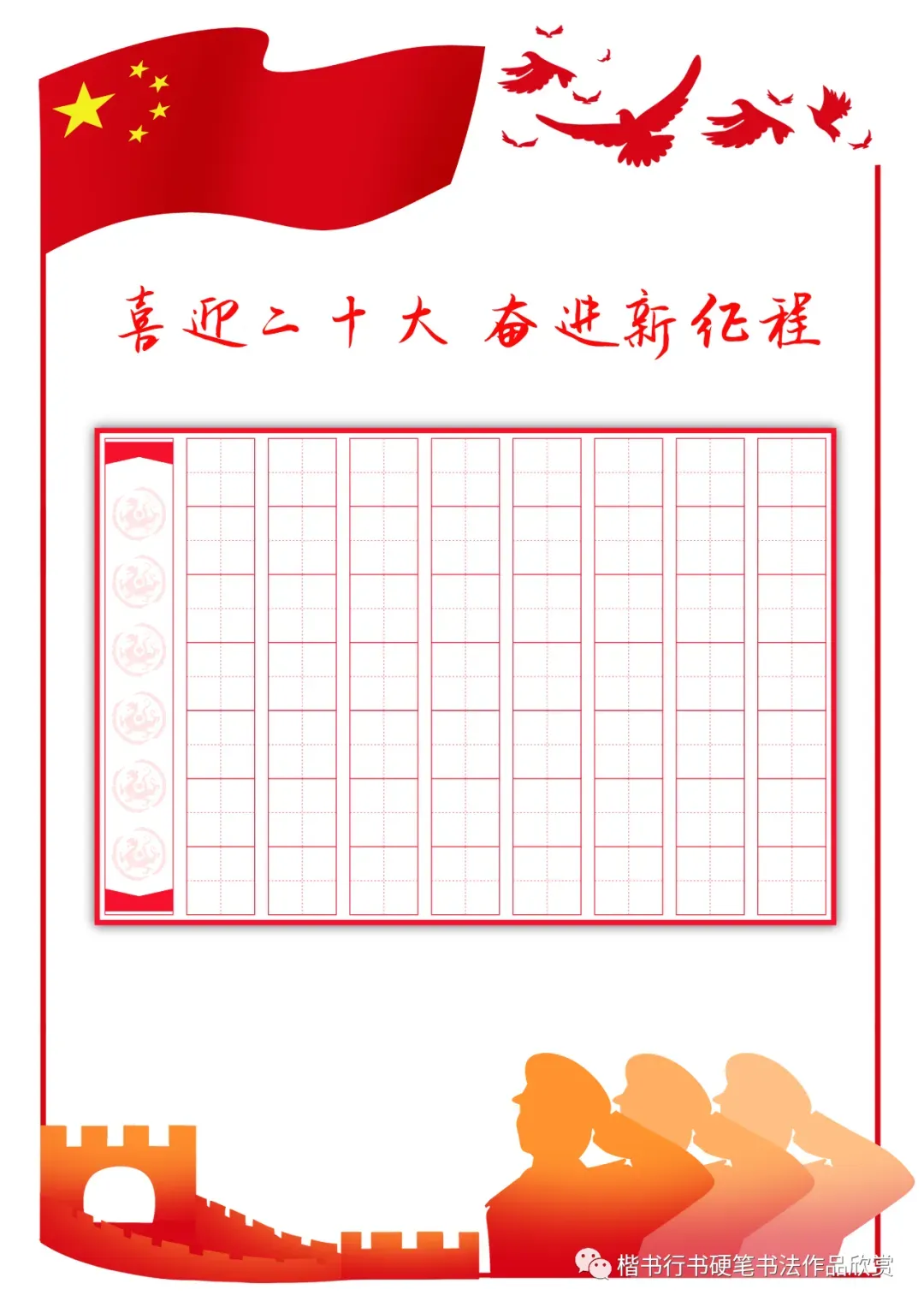 《喜迎二十大,奋进新征程》硬笔书法作品纸电子版,一共35页,无水印高清PDF文档,添加朋友 微信号:shufaee 购买
