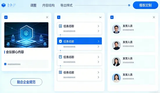 开完会,秘书的工作才刚刚开始。熙瑾会悟的本地AI能自动提炼核心议题、待办事项和发言人观点,生成多维度会议纪要。更值得一提的是,它支持纪要模板定制,无论是内容结构还是导出样式,都能贴合企业规范,进一步减轻了人工整理的负担。