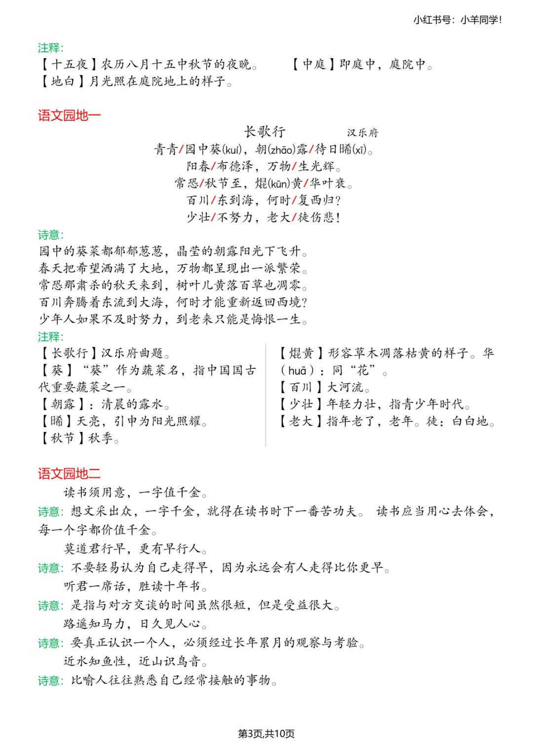 【高清电子版】六年级下册语文寒假预习必备课文内容汇总