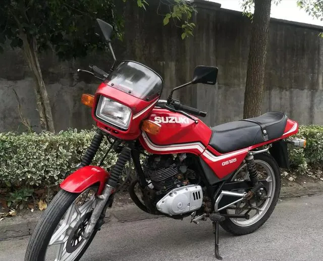 蓝色AX100就更不用说了。这个蓝色特别扎眼,不花哨,但很难忘。车身瘦,排气筒亮,往门口一停,哪怕院子旧一点,车还是会先抓住你的眼睛。再看那个年轻人倚着红车拍照的老照片,牛仔外套、喇叭裤味道的裤型、略带点拽的姿势,那时候的摩托车,已经不只是代步工具了,它开始跟“体面”和“风头”挂钩了。要是不说年份,你会猜成几几年?