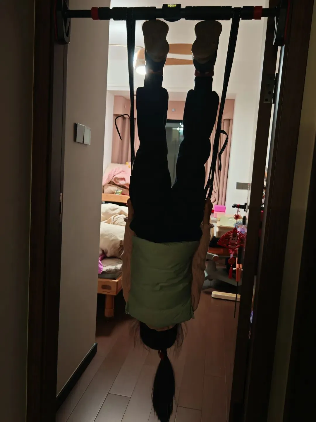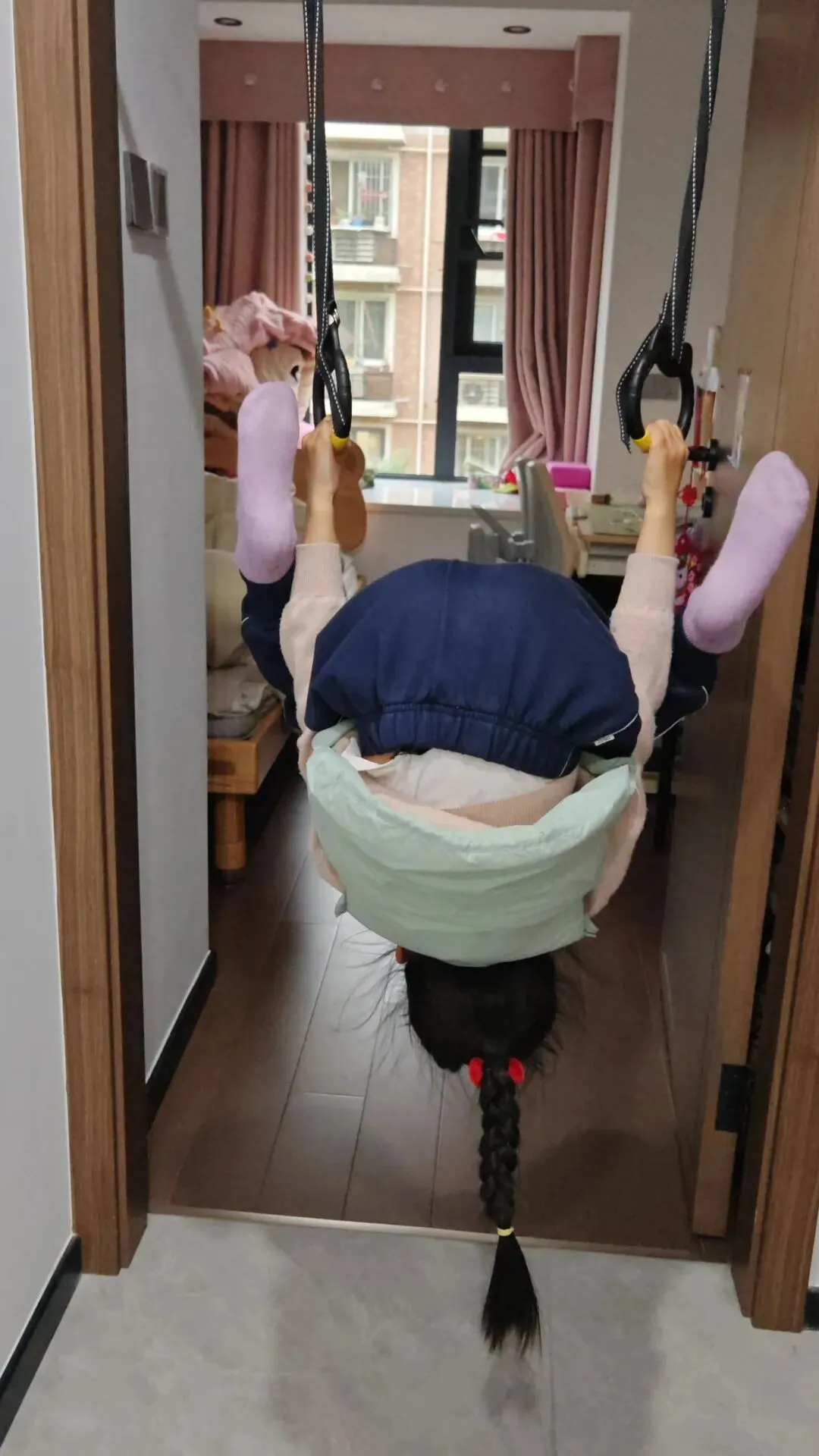 女儿一有空就跑去吊一吊、拉一拉,翻一翻,每天都在解锁新姿势、新技能,玩得不亦乐乎,根本不用催。