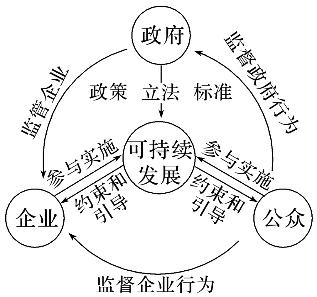 1.政府、企业、公众在可持续发展实施中的关系