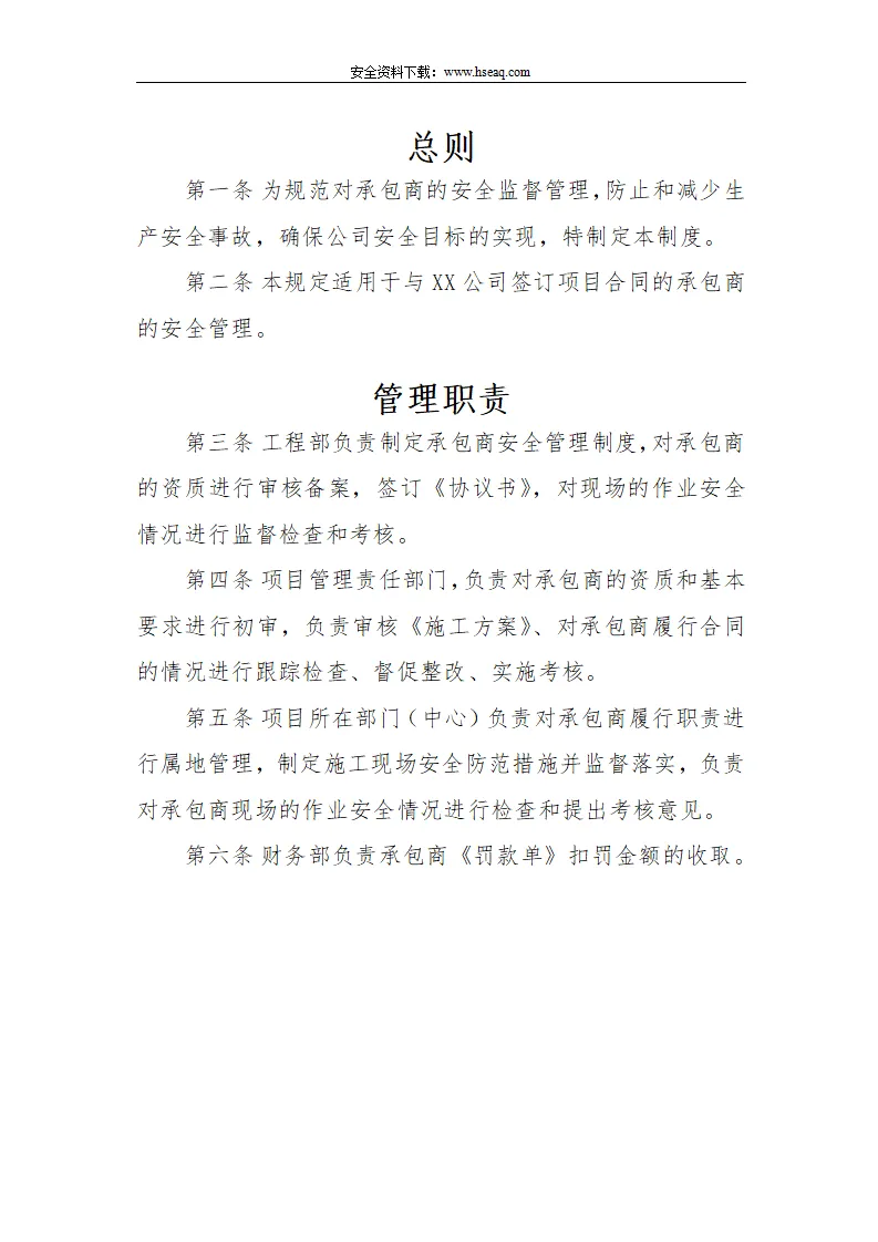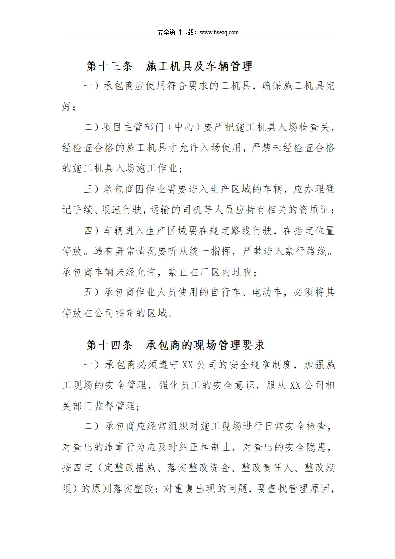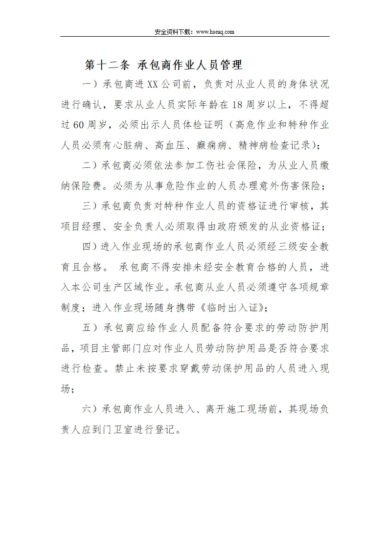 Word |【12】114-建筑工程承包商安全管理制度