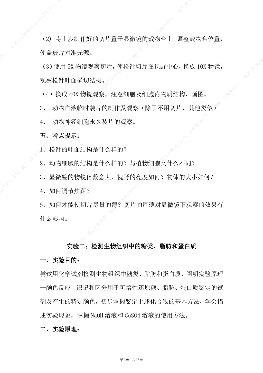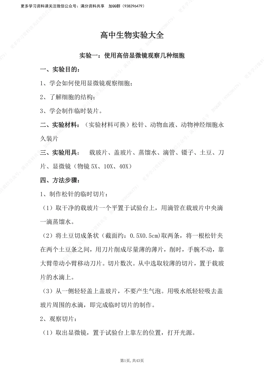 【高中生物】高中生物实验大全,电子版可打印