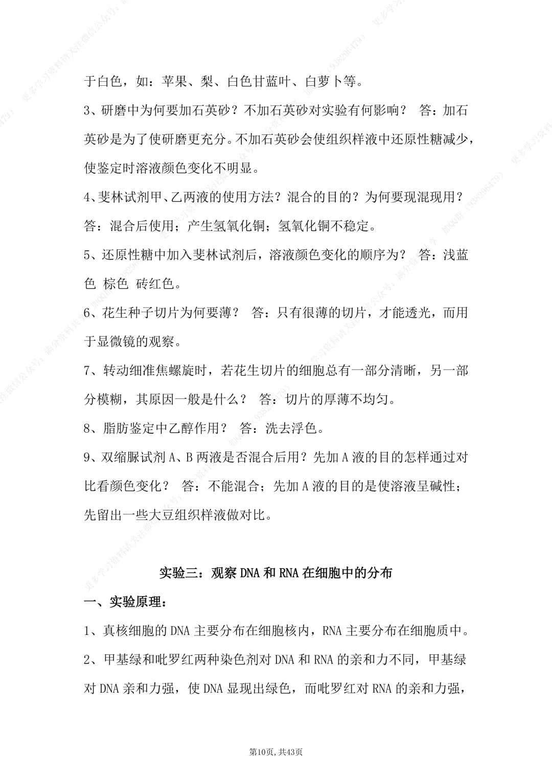 44.高考生物核心知识点、送分结论、细枝末节、万能答题模板整理(pdf分享)