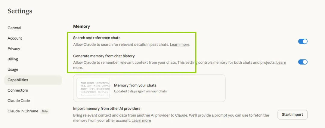 很多人把Claude当一次性问答工具,但它真正的价值在于长期陪伴中建立的认知共鸣。这两个开关,是这个过程的基础设施。