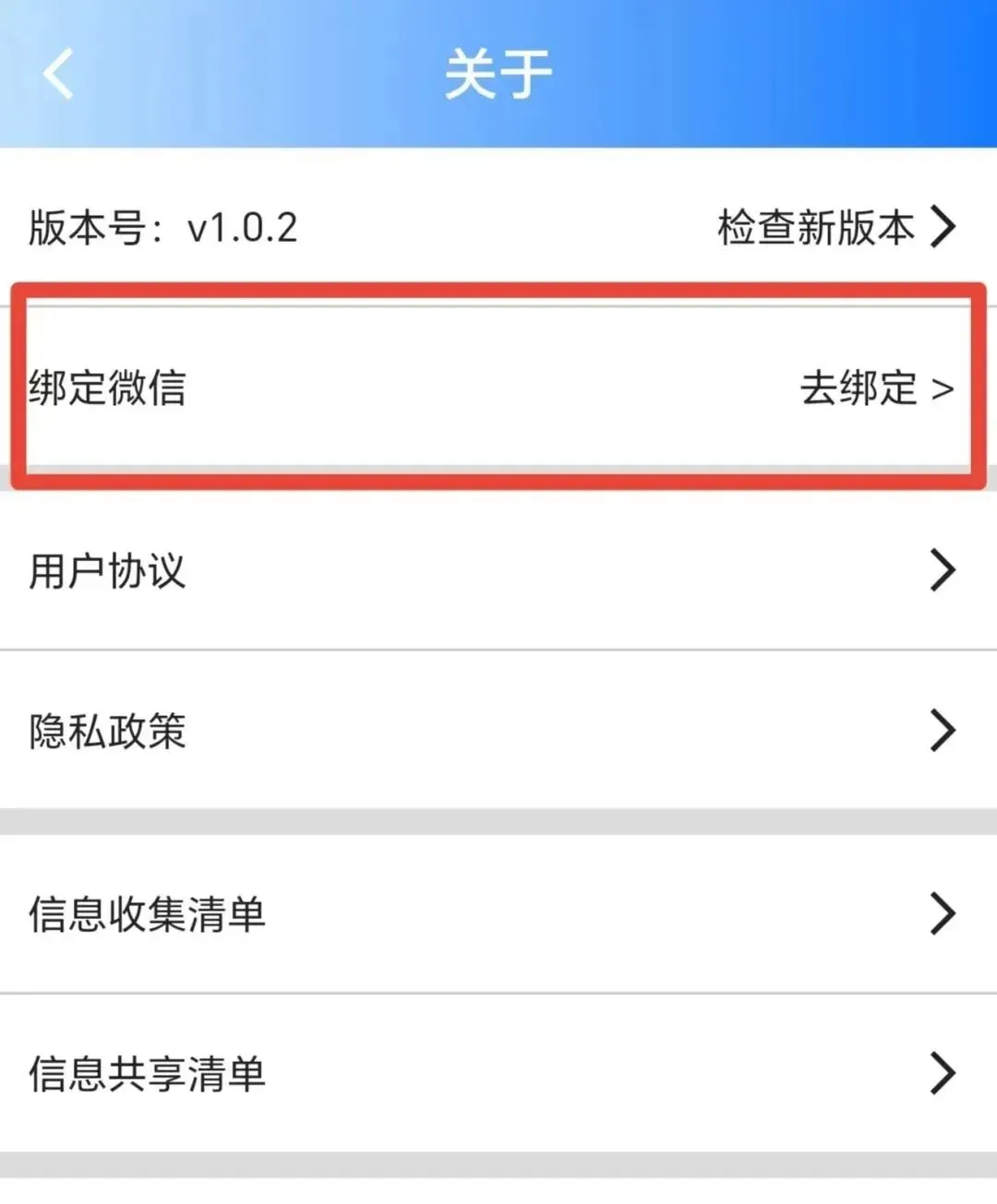 4、需在“我的“——”关于”——“绑定微信”后即可查看每日发布信息。