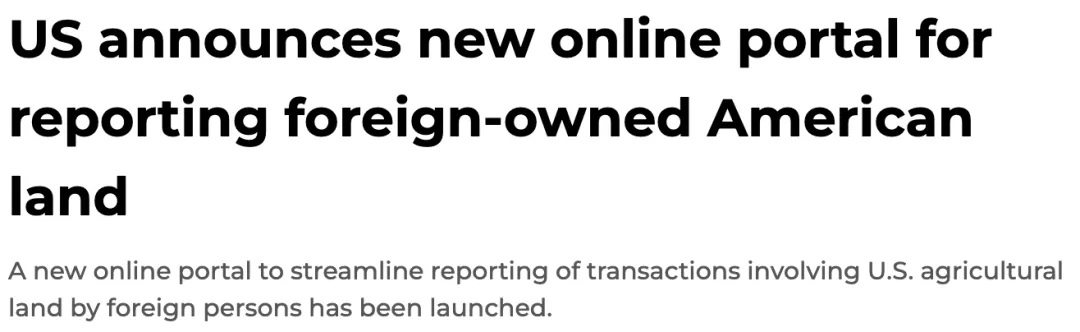 美国农业部(USDA)依据 1978 年《农业外国投资披露法案》(AFIDA),在近日推出新在线平台,旨在简化外国人(含海外企业和政府)涉及美国农业土地交易的报告流程。