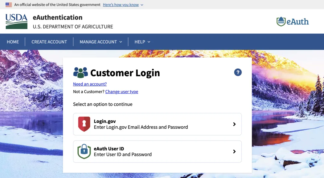 新平台网址为 afida.landmark.usda.gov ,用户可用 Login.gov 登录。它收集的信息与当前 FSA – 153 表格一致,申报者也可继续使用 FSA – 153 纸质表格,但勿重复提交。