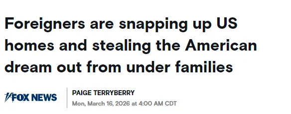“政府问责基金会” 资深研究员佩吉・泰瑞贝利(Paige Terryberry)16 日于福克斯新闻网撰文称,外国人大量现金购置美国房产,致使年轻美国人和中产阶级家庭的 “美国梦” 破灭,其中中国买家数量居首。