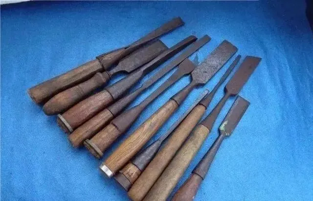 九种!薄的厚的 , 大的小的 , 寸凿、平凿、斜凿、圆凿…光圆凿就好几个尺寸呢 , 开不同的孔 , 就得换不同的凿 , 讲究吧?