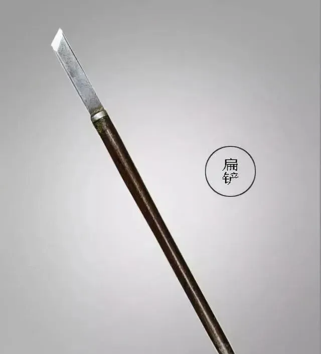 扁铲、圆口铲、斜刃铲 , 铲削小平面用的 , 小巧 , 刨子进不去的角落全靠它了~
