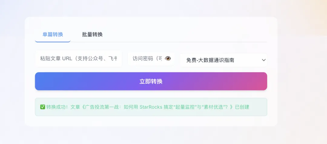 - 微信/语雀文档/飞书文章支持单篇/批量转换为博客网页